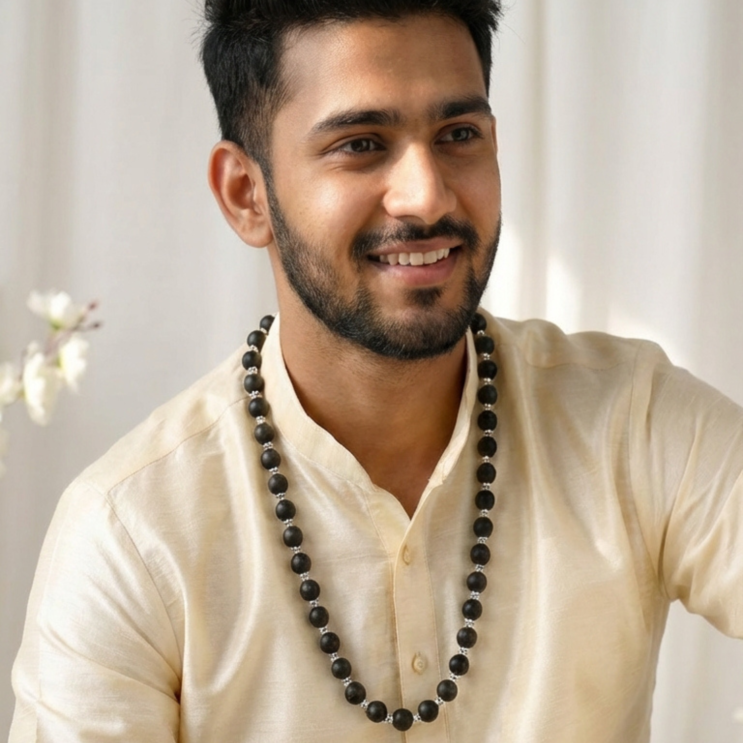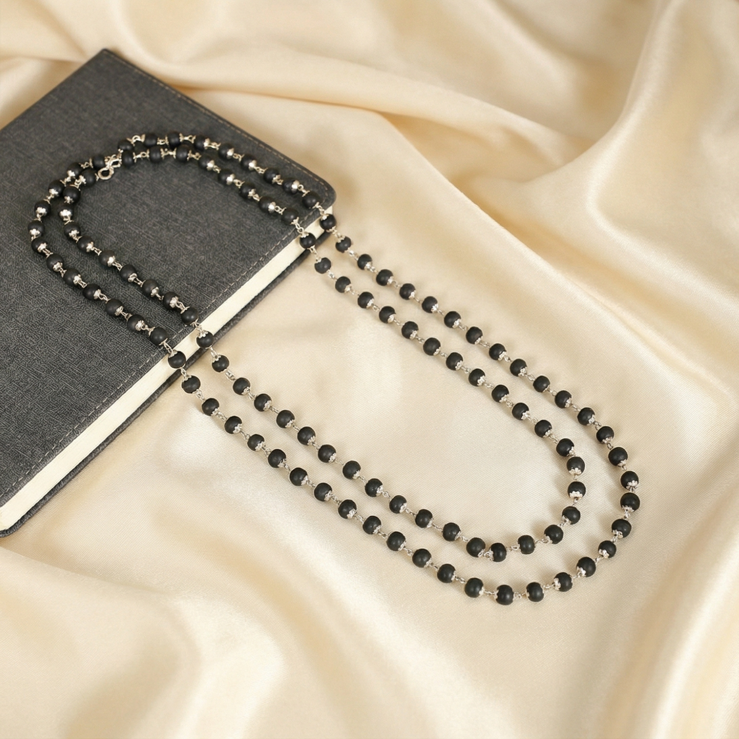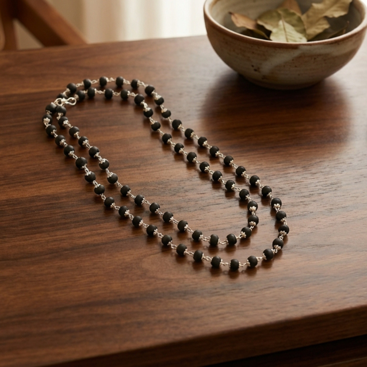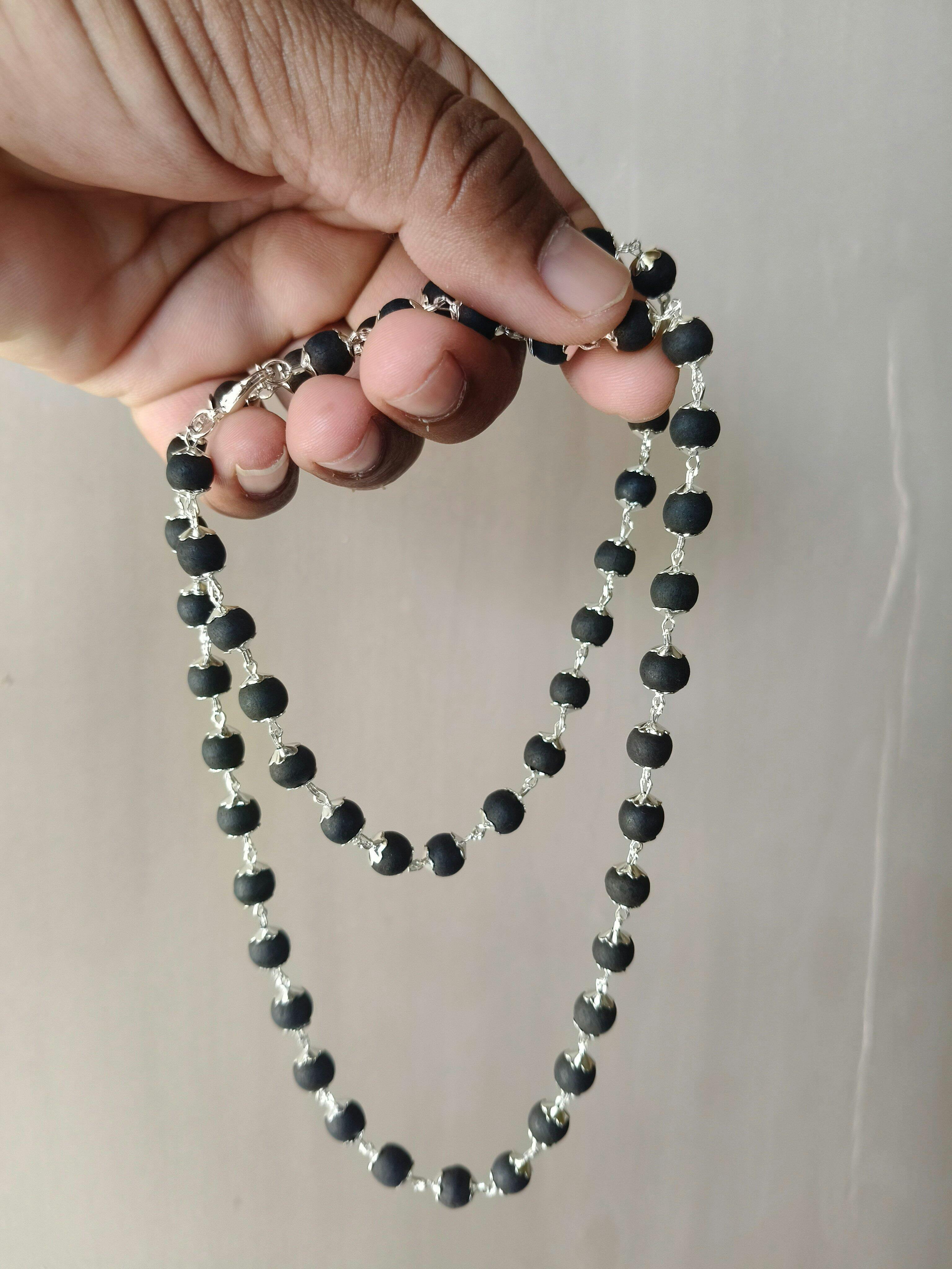 ಬೆಳ್ಳಿಯ ಕರುಂಗಲಿ ಮಾಲಾ - ನೈಸರ್ಗಿಕ ಎಬೋನಿ ವುಡ್ (Govt of India. Certified)